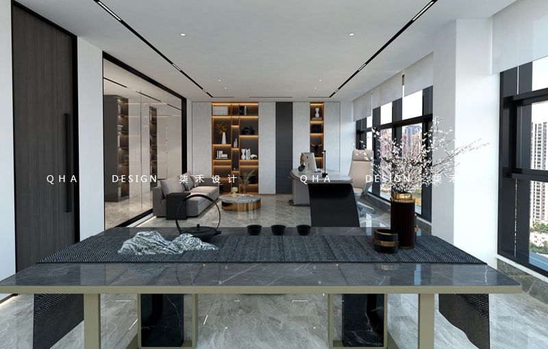 木饰面、石材、玻璃